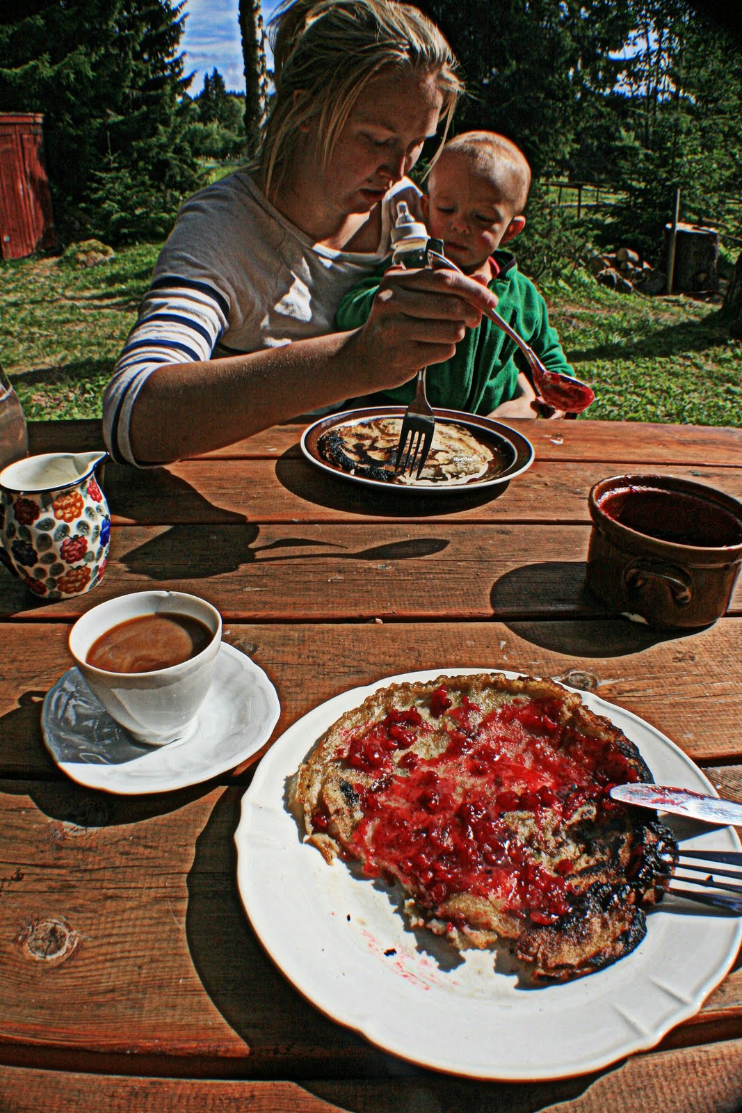 Här äter vi kolbullar och klappar getter.